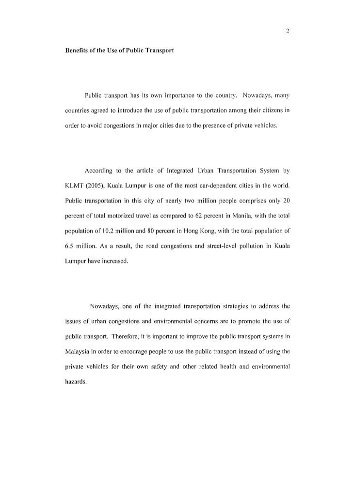 In the experiment, after having a motivation session about sustainable transport, the respondents were asked to design their travel patterns for seven days. Welcoming the government's decision to allow airlines to operate at full capacity, malaysia airlines said it would be able to price fares more competitively for the benefit of customers, while balancing the need to cover operational costs. This paper concerned with the public transportation services that offered in malaysia which is it become one of the attraction for tourism industry. Transport in malaysia started to develop during british colonial rule, and the country's transport network is now diverse and developed. Transportation in malaysia is varied in peninsular malaysia and east malaysia. .cheong sze hoong zac, public transport enthusiast and member of public transport advocacy group transit malaysia, told vice world the percentage of people who use public transport in klang valley sits at around 20 percent. Buses have the most passengers among the public transport service and make approximately 600,000 trips each day. See keretapi tanah melayu and rail transport in malaysia articles. In malaysia, the bus, minivan and train networks are very efficient, offer very reasonable prices and are reasonably comfortable. The ticket system is used, which writes off the minimum amount possible in automatic mode every day. If you are planning to use public transport for most of your travelling, it is recommended to go cashless and buy a touch 'n go (tng) card for around rm20 ($4.70 usd), which includes taxis in malaysia have a notorious reputation for not using their meter and tricking individuals into paying exorbitant costs. In malaysia, public transport is very developed and quite practical, and will save you the trouble of dealing with driving. From wikipedia, the free encyclopedia.